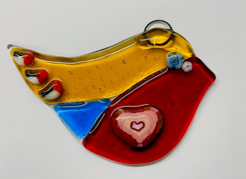 Discover the Magic of Glass Fusing Glass fusing is the art of melting colourful fragments of glass in a kiln to create beautiful, unified objects. In this hands-on workshop, you’ll create, two little birds, a coaster or hanging suncatcher and a small trinket dish, learning how to shape a variety of glass, from small glass sheets, to frit, strings, dots and little Murano.          Â